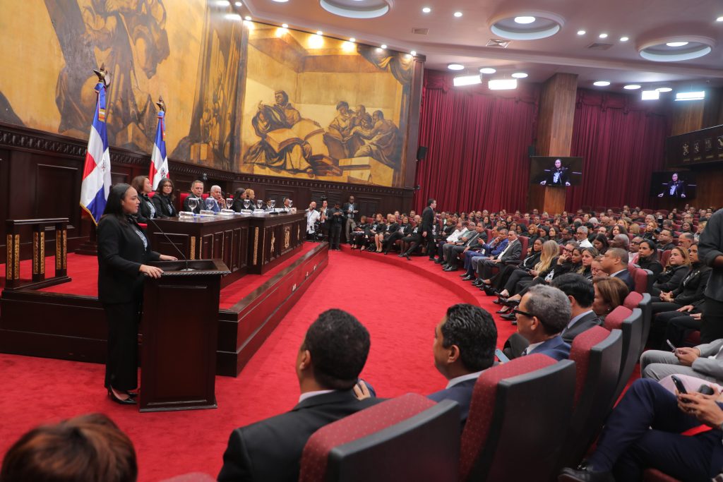 En el acto hicieron uso de las palabras, Kimberly Taveras, el presidente del Senado, Ricardo de los Santos, el presidente de la Cámara de Diputado, Alfredo Pacheco, este último mediante videos en pantalla, la vicepresidenta de la CD, Dharuelly D’Aza, así como otras colegas del Congreso.