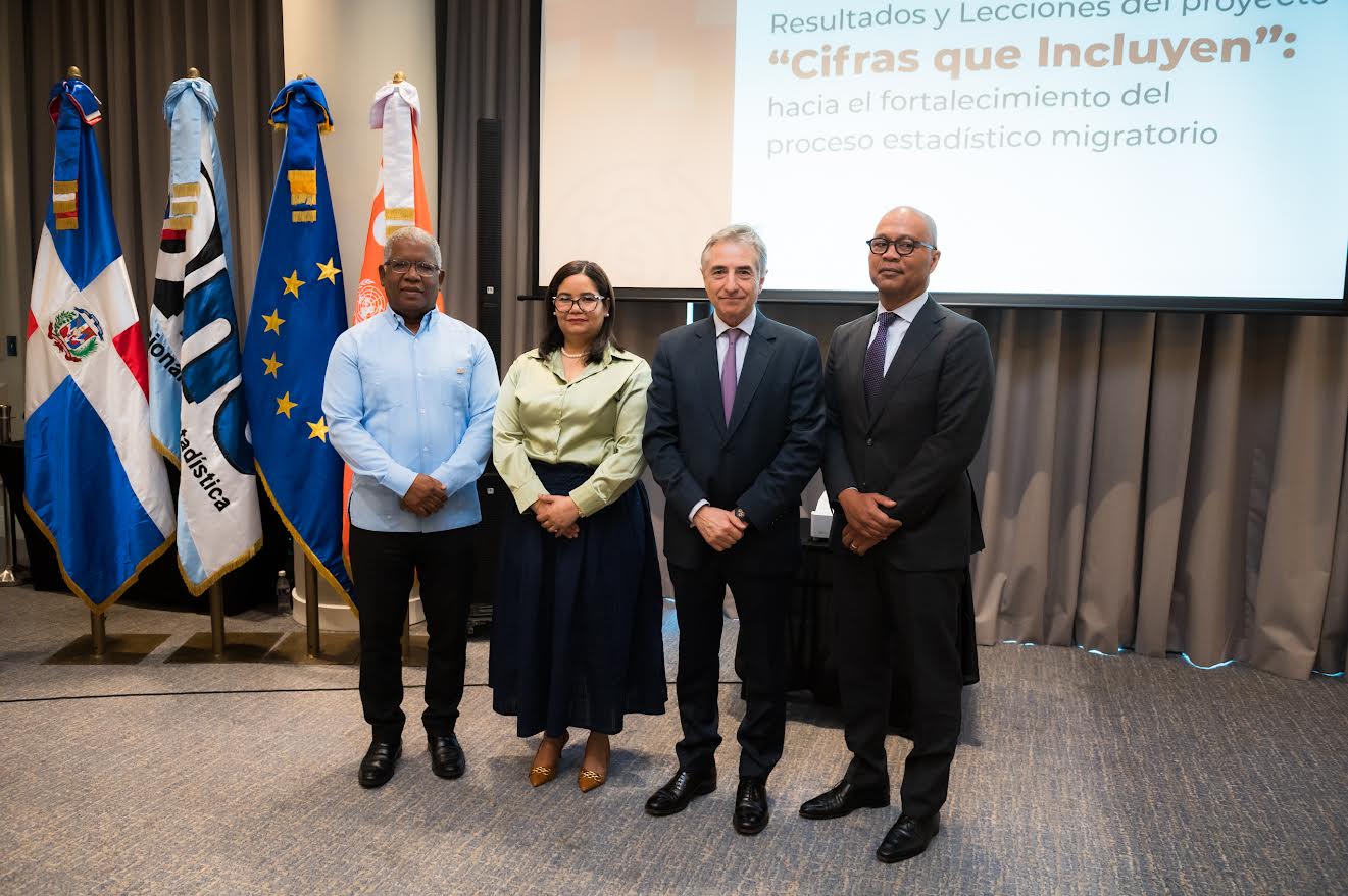 SANTO DOMINGO, República Dominicana.- La Oficina Nacional de Estadística (ONE) con la asistencia técnica del Fondo de Población de las Naciones Unidas (UNFPA) y el financiamiento de la Unión Europea, presentó los resultados y lecciones del proyecto «Cifras que Incluyen»: hacia el fortalecimiento del proceso estadístico migratorio, una iniciativa orientada a fortalecer la producción de estadísticas migratorias mediante el aprovechamiento de registros administrativos en la República Dominicana.