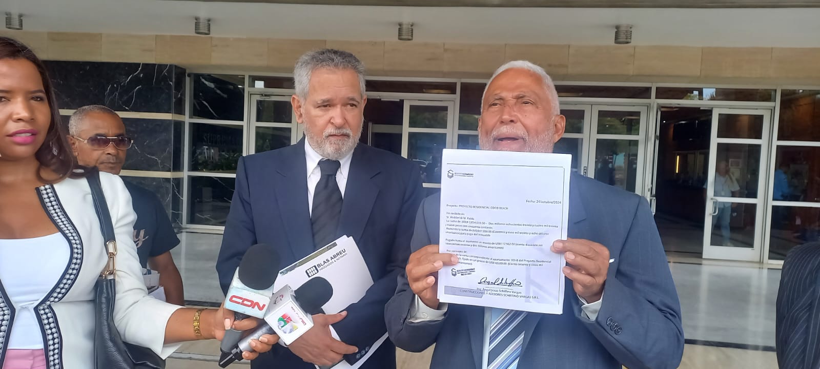 “Hemos querido venir hasta la Procuraduría General de la República a denunciar que estamos siendo estafados de manera burda por quien fuera nuestro socio en el proyecto Residencial Coco Beach, el ingeniero civil Ángel Carlos Schiffino Peralta, afectando la imagen de República Dominicana, destruyendo la seguridad jurídica, ya que la mayoría de los clientes que nosotros les vendimos apartamentos son personas que han venido de retirada, luego de trabajar por toda su vida en Estados Unidos y otras partes del mundo”, expresó el empresario Beltré.