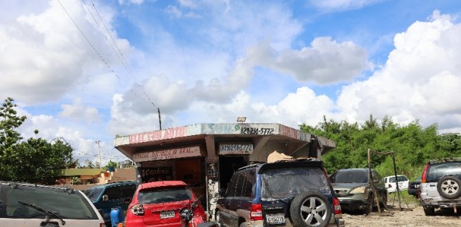 Este taller de mecánica está ubicado en la entrada principal del Residencial Remanso, San Felipe, obstruye el transito vehícular y peatonal, pero ninguna autoridad pone freno.