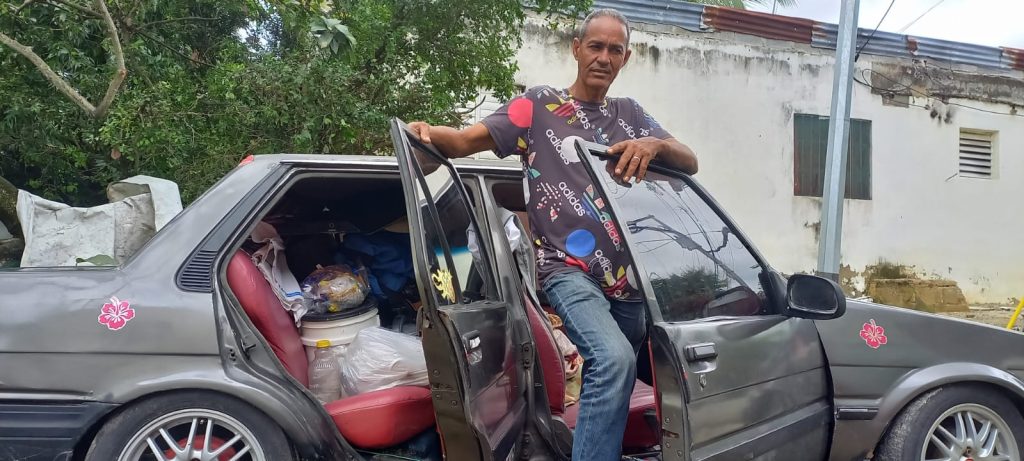 Desde el viernes amanece en un carro en una calle cercana, porque no hay forma de llegar a su hogar mientras siga bajo la influencia del Ozama.
